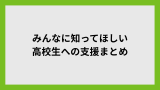 高校生と保護者のみなさまが活用できる支援を4つご紹介しました。特に、1つ目の「NPO法人D×Pの現金給付」と4つ目の「新型コロナウイルス感染症対応休業支援金・給付金」は高校生のみなさんでも相談や申請が可能で、特に後者の「新型コロナウイルス感染症対応休業支援金・給付金」は保護者の方やご兄弟も対象の方がいるかもしれません。申請できる期間も限られていますので、ご家族でお早めに確認してはいかがでしょうか。